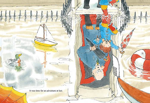 Rain, by Sam Usher, has a similar theme just as beautifully illustrated. Part of a series of weather-related books, Rain invites you to join a grandson and his grandfather on a bit of rainy day boredom and frustration turned adventure of their own. And if it's not quite wet enough for you, check out another in Usher's series, Storm! (I just noticed a book of his that I haven't seen before, Wild, so ... guess what I'm checking out next?!)